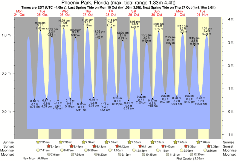Tide Times are EST (UTC -5.0hrs). Last Spring High Tide at Phoenix Park was on Fri 19 Dec (height: 0.80m 2.6ft). Next high Spring Tide at Phoenix Park will be on Fri 02 Jan (height: 0.88m 2.9ft).