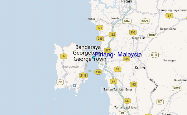 Use this relief map to navigate to tide stations, surf breaks and cities that are in the area of Pinang, Malaysia.