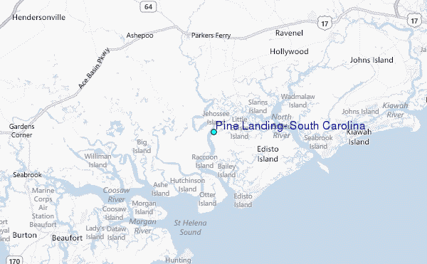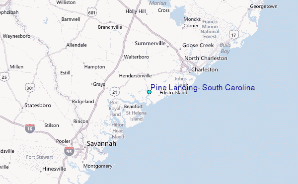 Use this relief map to navigate to tide stations, surf breaks and cities that are in the area of Pine Landing, South Carolina.