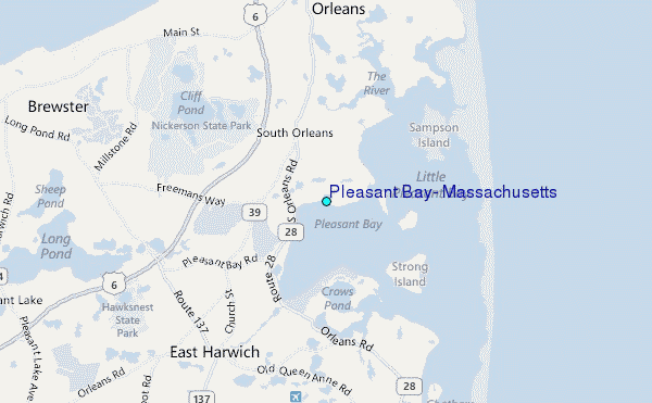 Use this relief map to navigate to tide stations, surf breaks and cities that are in the area of Pleasant Bay, Massachusetts.
