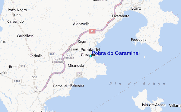 Use this relief map to navigate to tide stations, surf breaks and cities that are in the area of Pobra do Caraminal.