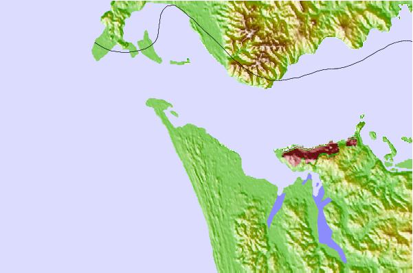 Use this relief map to navigate to tide stations, surf breaks and cities that are in the area of Point Adams., Columbia River, Oregon.