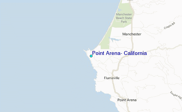 Use this relief map to navigate to tide stations, surf breaks and cities that are in the area of Point Arena, California.