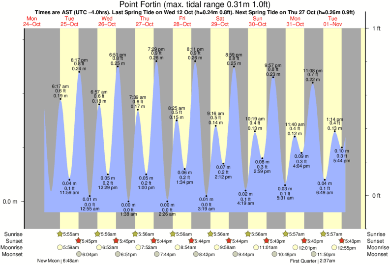 December and January Tide charts for Point Fortin: The tide charts below show the height, time and date of high and low tides for the next 30 days.