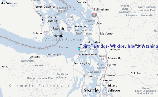 Use this relief map to navigate to tide stations, surf breaks and cities that are in the area of Point Partridge, Whidbey Island, Washington.