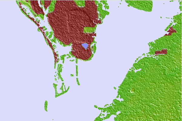 Use this relief map to navigate to tide stations, surf breaks and cities that are in the area of Point Pinellas, Tampa Bay, Florida.