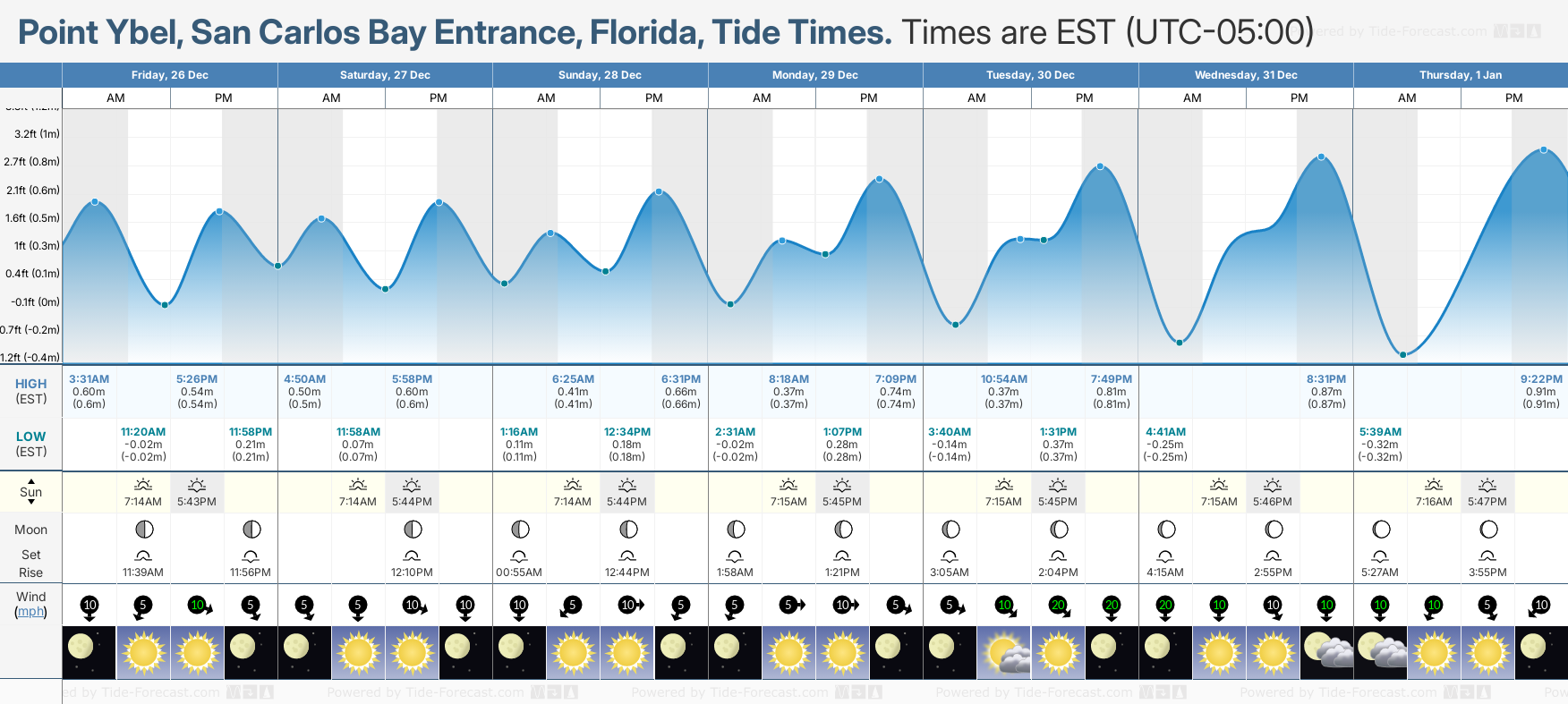 Today's tide times for Point Ybel, San Carlos Bay Entrance, Florida