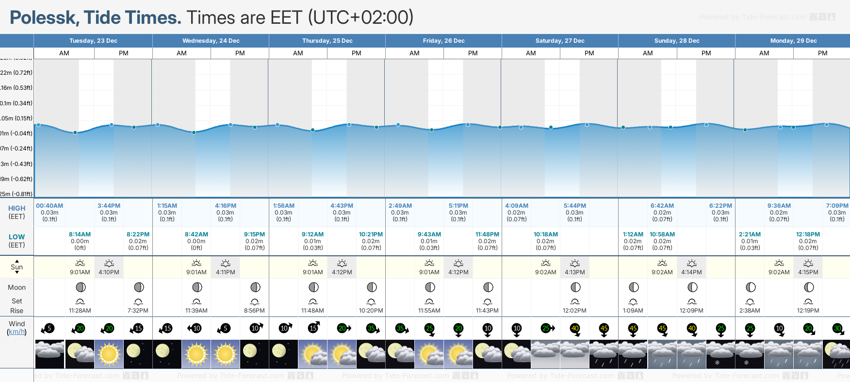 Tide Times for Polessk (tomorrow): Wednesday 24 December 2025