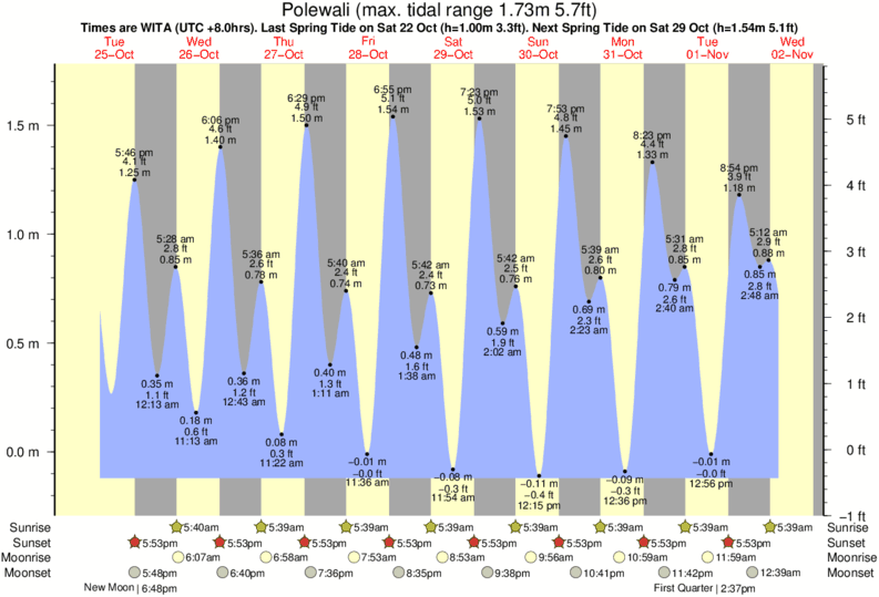 December and January Tide charts for Polewali: The tide charts below show the height, time and date of high and low tides for the next 30 days.
