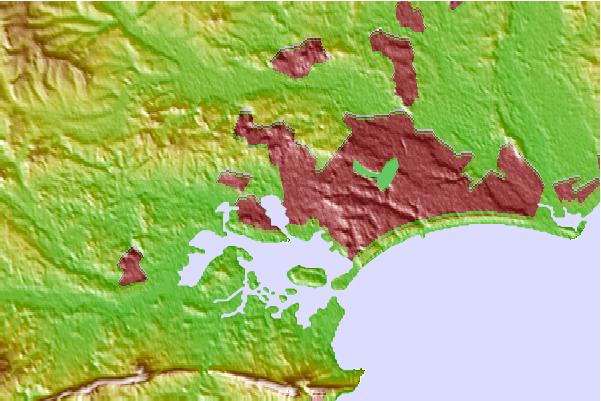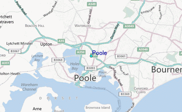 Use this relief map to navigate to tide stations, surf breaks and cities that are in the area of Poole.