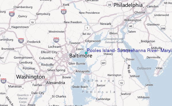 Use this relief map to navigate to tide stations, surf breaks and cities that are in the area of Pooles Island, Susquehanna River, Maryland.
