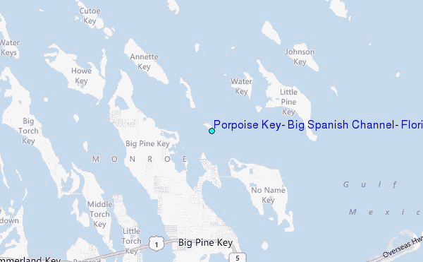 Use this relief map to navigate to tide stations, surf breaks and cities that are in the area of Porpoise Key, Big Spanish Channel, Florida.