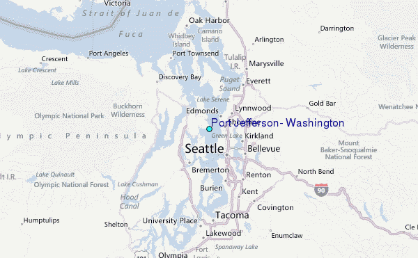 Use this relief map to navigate to tide stations, surf breaks and cities that are in the area of Port Jefferson, Washington.
