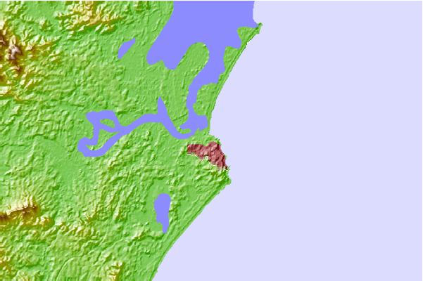 Use this relief map to navigate to tide stations, surf breaks and cities that are in the area of Port Macquarie, Australia.