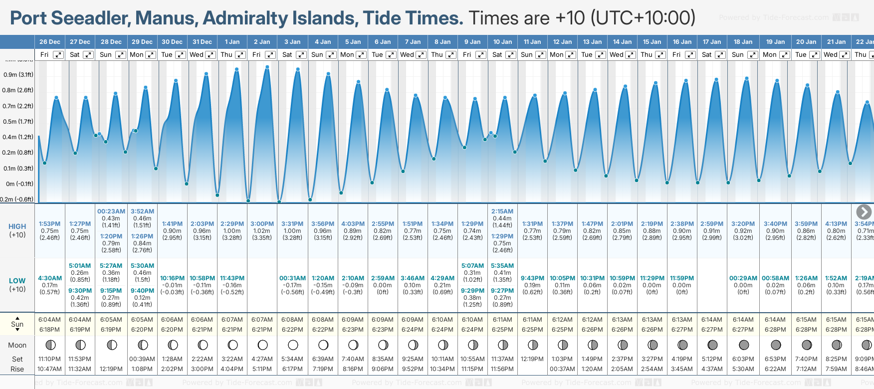 Tide Times for Port Seeadler, Manus, Admiralty Islands (tomorrow): Friday 26 December 2025