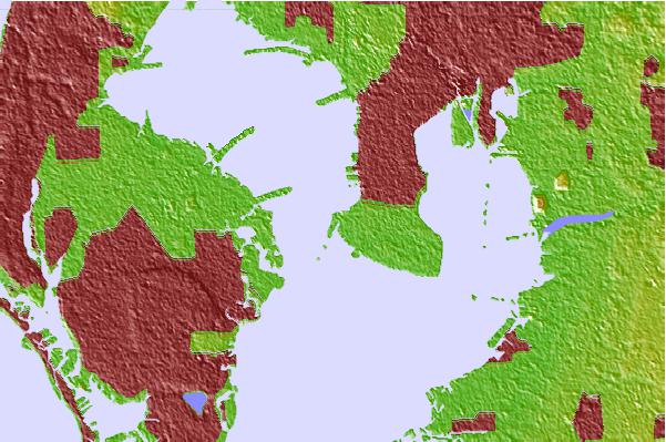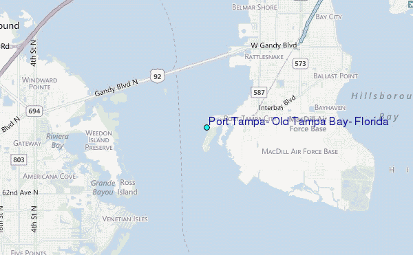 Use this relief map to navigate to tide stations, surf breaks and cities that are in the area of Port Tampa, Old Tampa Bay, Florida.
