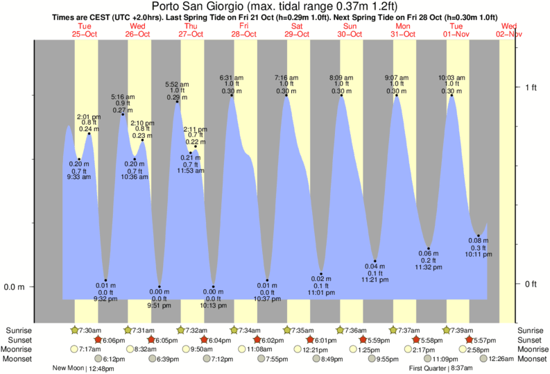 Tide chart for Porto San GiorgioShowing low and high tide times for the next 30 days at Porto San Giorgio. Tide Times are CET (UTC +1.0hrs).