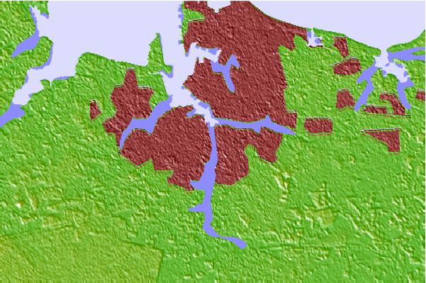 Use this relief map to navigate to tide stations, surf breaks and cities that are in the area of Portsmouth, Norfolk Naval Shipyard, Virginia.