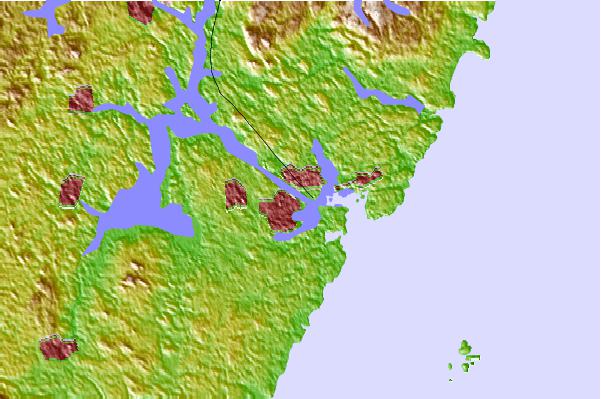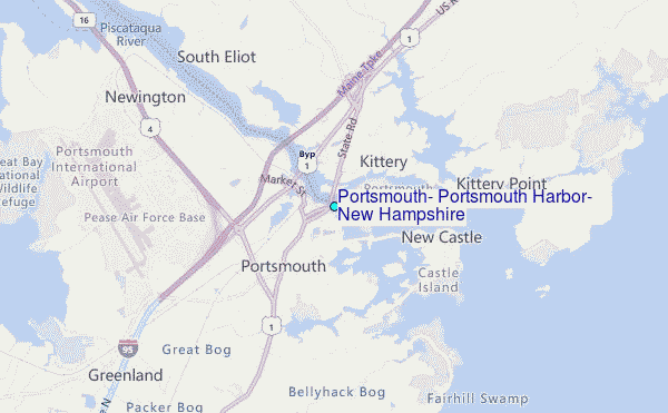 Use this relief map to navigate to tide stations, surf breaks and cities that are in the area of Portsmouth, Portsmouth Harbor, New Hampshire.