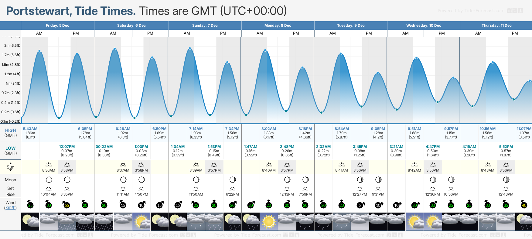 Tide Times for Portstewart: Thursday 11 December 2025