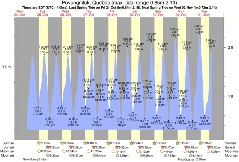 Tide Times are EST (UTC -5.0hrs). Last Spring High Tide at Povungnituk was on Wed 17 Dec (height: 0.53m 1.7ft). Next high Spring Tide at Povungnituk will be on Sun 28 Dec (height: 0.70m 2.3ft).
