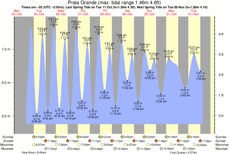 December and January Tide charts for Praia Grande: The tide charts below show the height, time and date of high and low tides for the next 30 days.