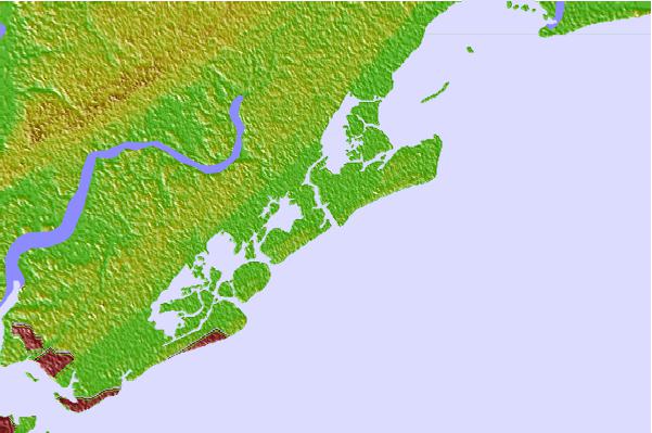 Use this relief map to navigate to tide stations, surf breaks and cities that are in the area of Price Creek, North Capers Island, South Carolina.
