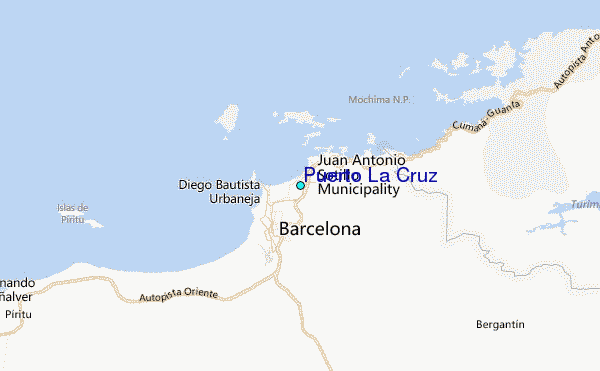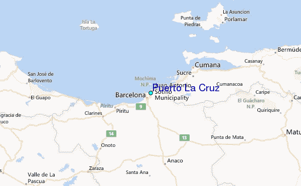 Use this relief map to navigate to tide stations, surf breaks and cities that are in the area of Puerto La Cruz.