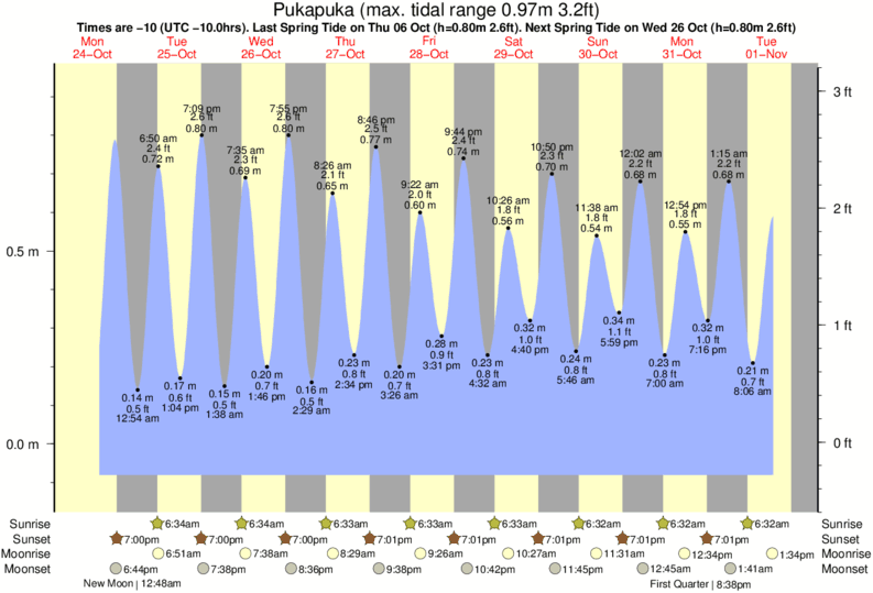 Tide chart for PukapukaShowing low and high tide times for the next 30 days at Pukapuka. Tide Times are -10 (UTC -10.0hrs).