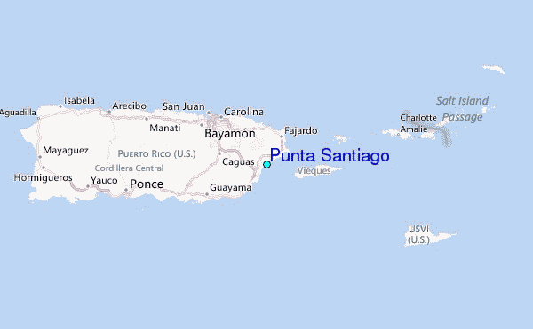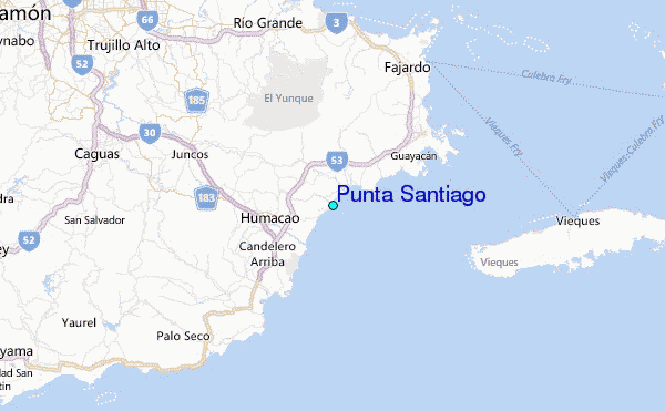 Use this relief map to navigate to tide stations, surf breaks and cities that are in the area of Punta Santiago.