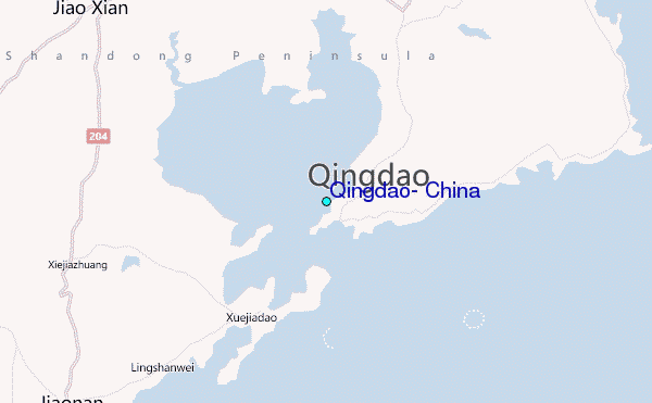 Use this relief map to navigate to tide stations, surf breaks and cities that are in the area of Qingdao, China.