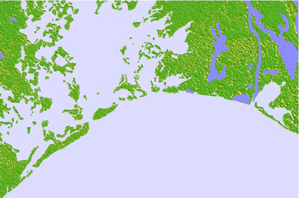 Use this relief map to navigate to tide stations, surf breaks and cities that are in the area of Quatre Bayous Pass, Mississippi River Delta, Louisiana.