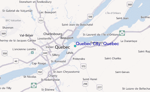 Use this relief map to navigate to tide stations, surf breaks and cities that are in the area of Quebec City, Quebec.
