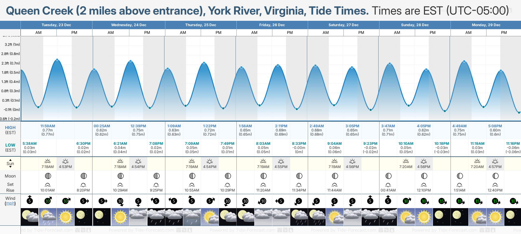 Tide Times for Queen Creek (2 miles above entrance), York River (tomorrow): Wednesday 24 December 2025