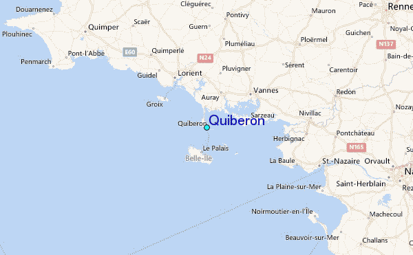 Use this relief map to navigate to tide stations, surf breaks and cities that are in the area of Quiberon.