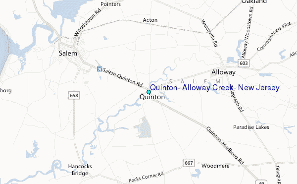 Use this relief map to navigate to tide stations, surf breaks and cities that are in the area of Quinton, Alloway Creek, New Jersey.