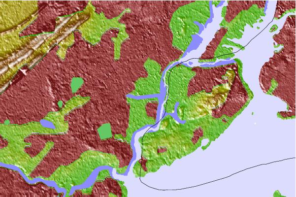 Use this relief map to navigate to tide stations, surf breaks and cities that are in the area of Rahway River, Railroad Bridge, New Jersey.
