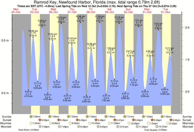 Tide Times are EST (UTC -5.0hrs). Last Spring High Tide at Ramrod Key, Newfound Harbor was on Fri 05 Dec (height: 0.65m 2.1ft). Next high Spring Tide at Ramrod Key, Newfound Harbor will be on Sun 21 Dec (height: 0.51m 1.7ft).