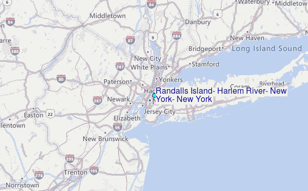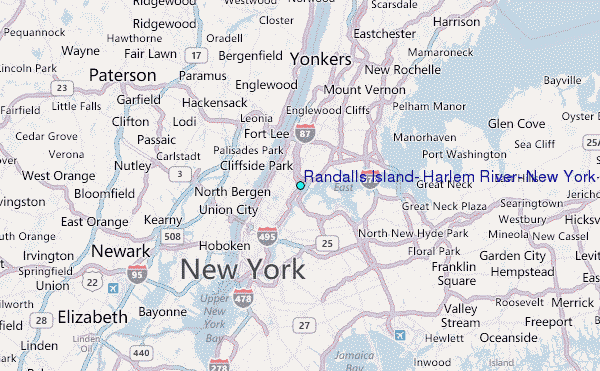 Use this relief map to navigate to tide stations, surf breaks and cities that are in the area of Randalls Island, Harlem River, New York, New York.