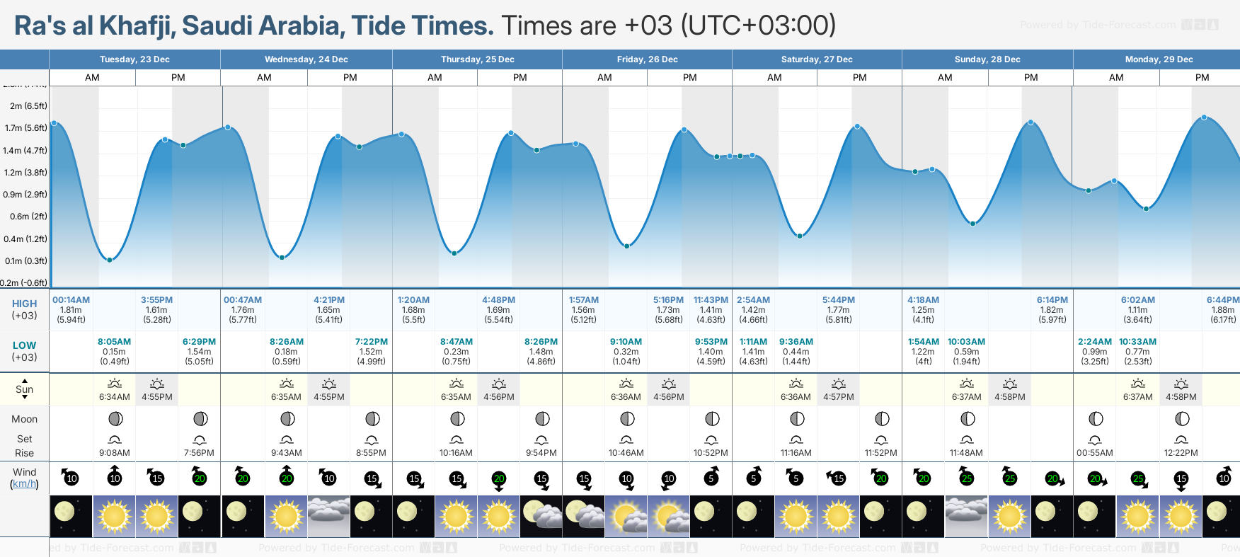 NOTE: Use of this site for Ra's al Khafji, Saudi Arabia tide times is subject to our terms.