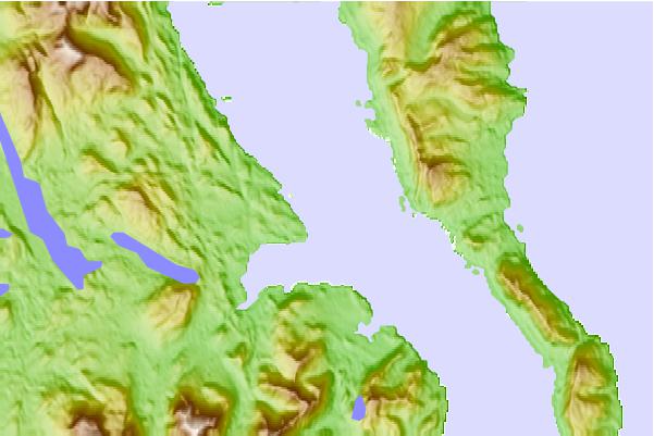Use this relief map to navigate to tide stations, surf breaks and cities that are in the area of Rasp Ledge, Seymour Canal, Stephens Passage, Alaska.