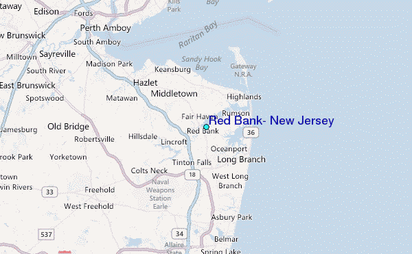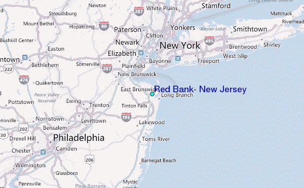 Use this relief map to navigate to tide stations, surf breaks and cities that are in the area of Red Bank, New Jersey.