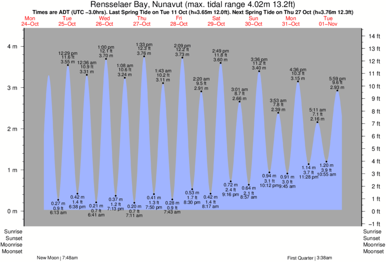 Tide chart for Rensselaer BayShowing low and high tide times for the next 30 days at Rensselaer Bay. Tide Times are AST (UTC -4.0hrs).