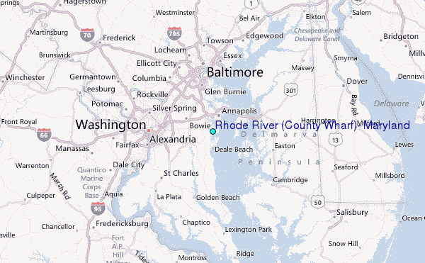 Use this relief map to navigate to tide stations, surf breaks and cities that are in the area of Rhode River (County Wharf), Maryland.