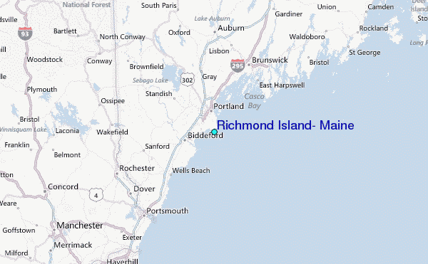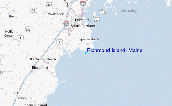 Use this relief map to navigate to tide stations, surf breaks and cities that are in the area of Richmond Island, Maine.