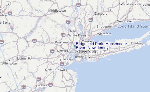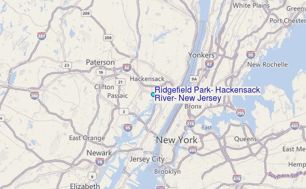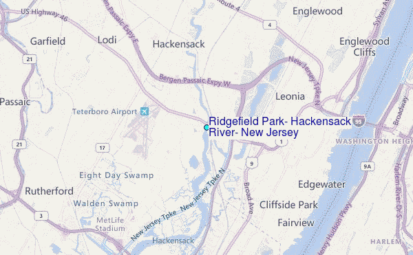 Use this relief map to navigate to tide stations, surf breaks and cities that are in the area of Ridgefield Park, Hackensack River, New Jersey.