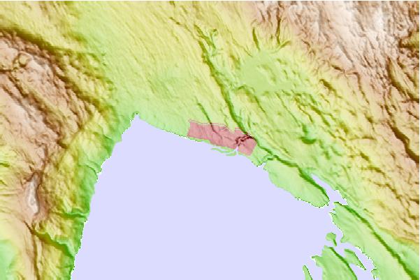 Use this relief map to navigate to tide stations, surf breaks and cities that are in the area of Rijeka, Croatia.