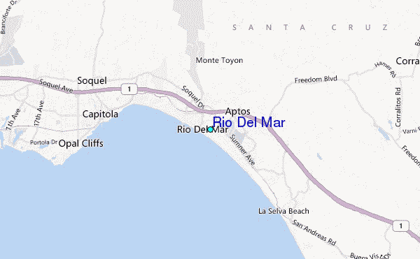 Use this relief map to navigate to tide stations, surf breaks and cities that are in the area of Rio Del Mar.