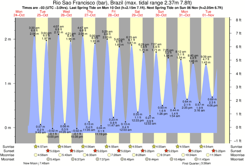 Tide chart for Rio Sao Francisco (bar)Showing low and high tide times for the next 30 days at Rio Sao Francisco (bar). Tide Times are -03 (UTC -3.0hrs).