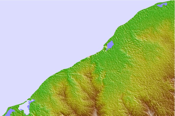 Use this relief map to navigate to tide stations, surf breaks and cities that are in the area of Riohacha, Colombia.